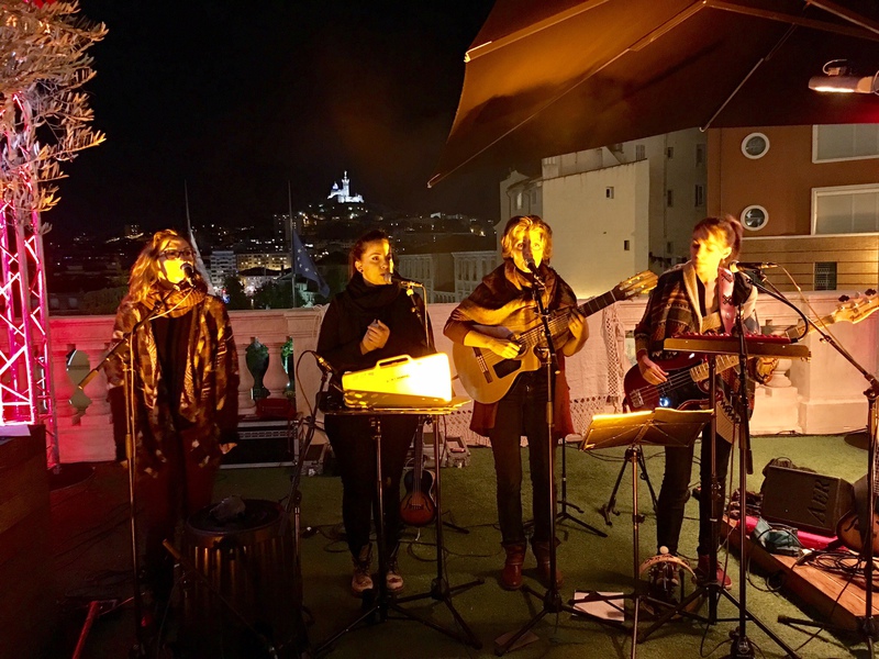La soirée était animée par les « Calamity Sisters", un groupe excellentissime, qui proposa un cocktail de créations originales, de reprises pop et de chansons françaises revisitées, qui mit le